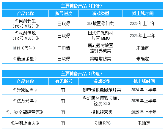公司儲備多款新品,,,,期待為玩家解鎖更多新鮮體驗,,部分產品如下表所示:::