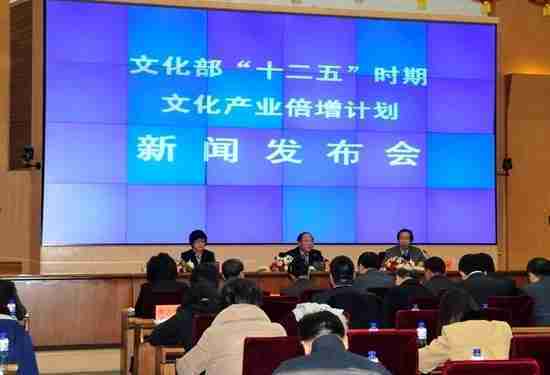 2月28日下午,,,,文化部在京召開新聞發布會,,,正式向社會發布《文化部“十二五”時期文化產業倍增計劃》,,提出了 “十二五”期間文化部門管理的文化產業增加值年平均現價增長速度高于20%,,,2015年比2010年至少翻一番,,實現倍增的奮斗目標。。。